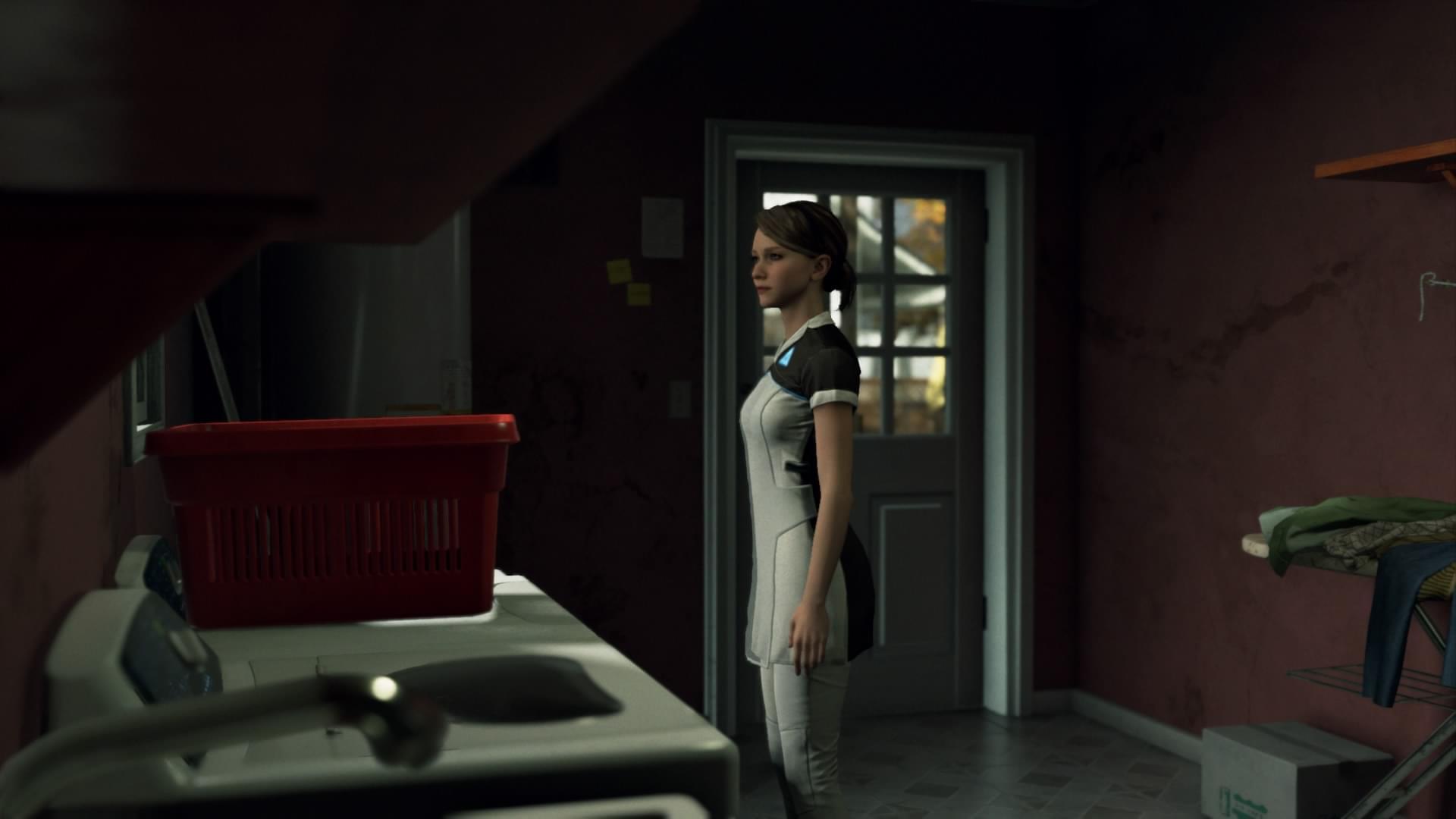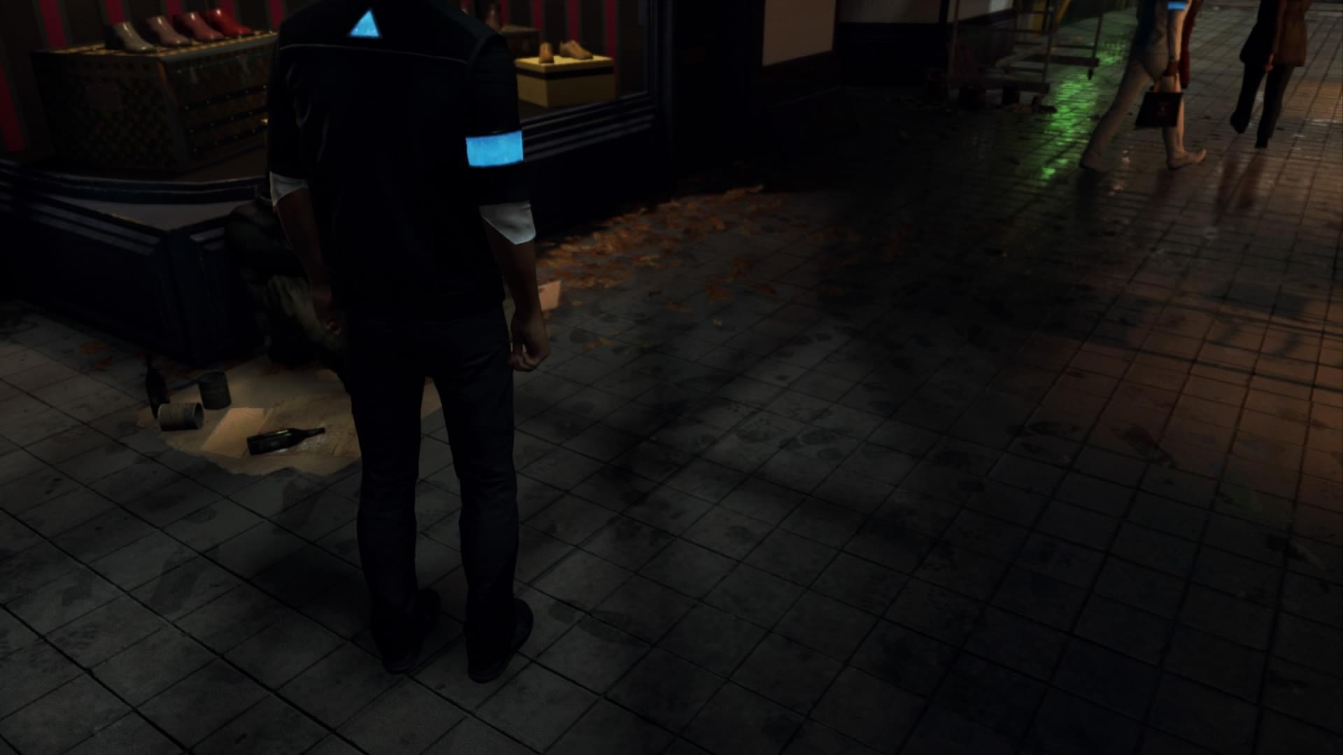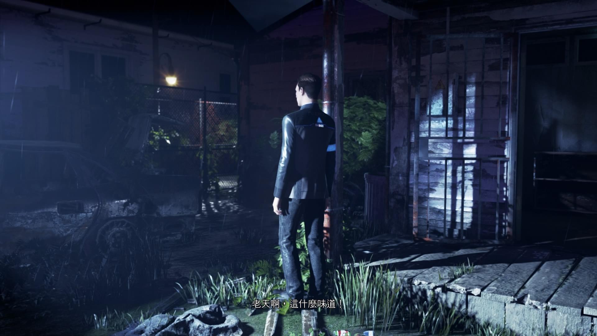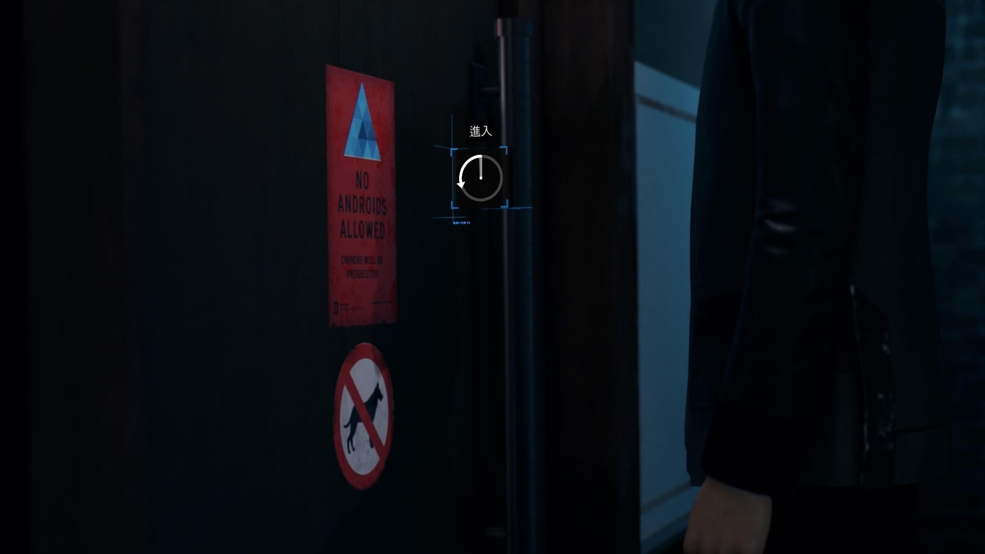 直到審問完成的時候被一顆子彈命中頭顱,然後在一個奇怪的場所被一個奇怪且嚴厲的人督促著去完成調查任務。中間大概也有幾個點,追逐戰那個我救了人類搭檔,倉庫尋找痕跡那個花了很多功夫追蹤到最後但是藍血痕跡中斷,最後在是否要殺害仿生人換取線索時候旁邊的搭檔一直告訴我不要殺不要殺不要殺,我真的沒有開槍,我放棄了,然後,他出來以後,卻似乎在帶有責備的問我為什麼沒有開槍(是您不讓我開槍的好嗎?)於是康納調查失敗,被報廢。