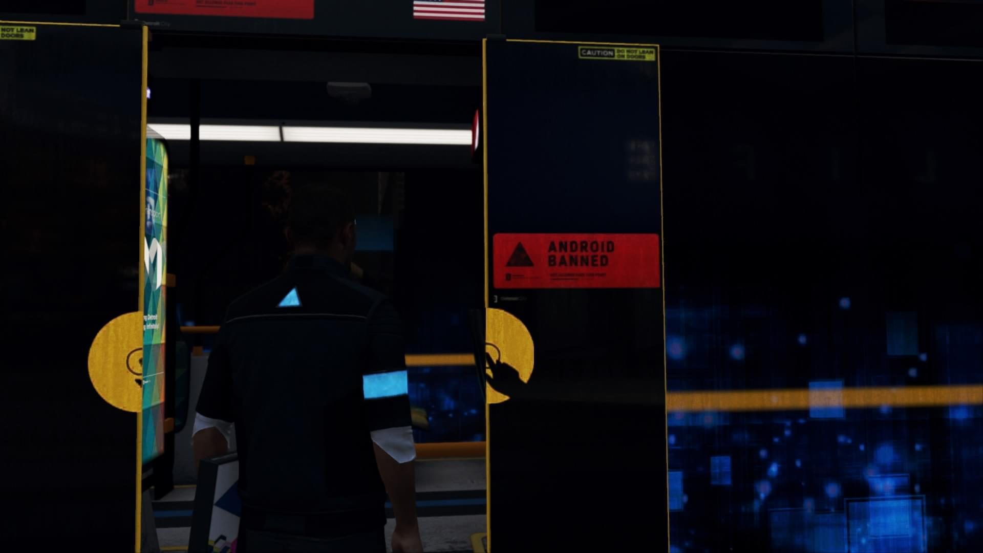 遊行選擇撤退後,對方收槍,仿生人轉頭,回頭路上聽到聽到對方老大來了句聽我指令。好的,假設這個時候對方開槍,會怎樣呢?遊行仿生人會被全滅嗎?現在的組織是否承擔得起這個失敗呢?沒什麼選擇的餘地實際上。然後就基本無法回頭了。我理解的仿生人,戰鬥力是明顯會比人類強的,結果用舊式武器還似乎還是55開,那人類扔個電子病毒不全滅了?