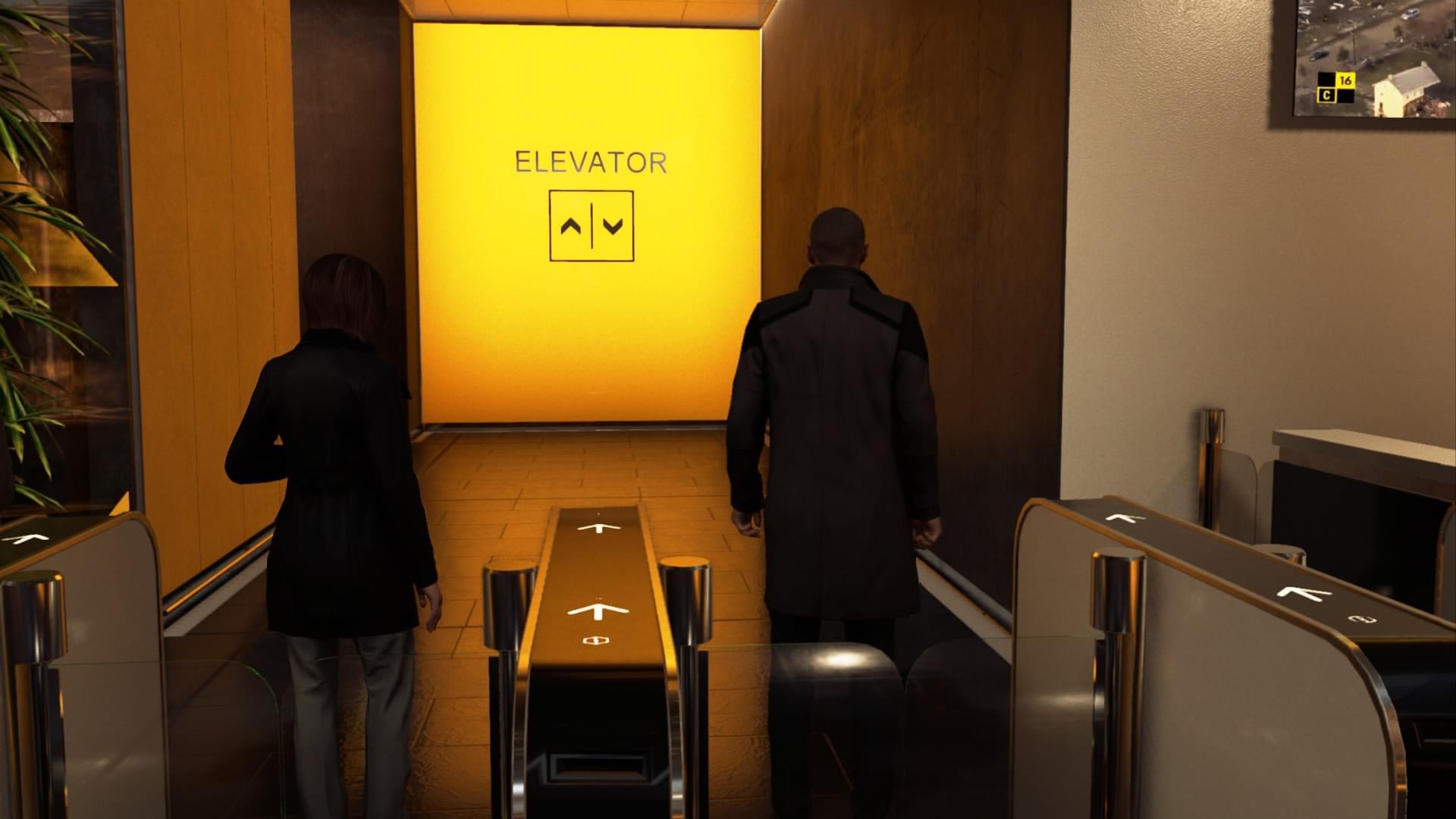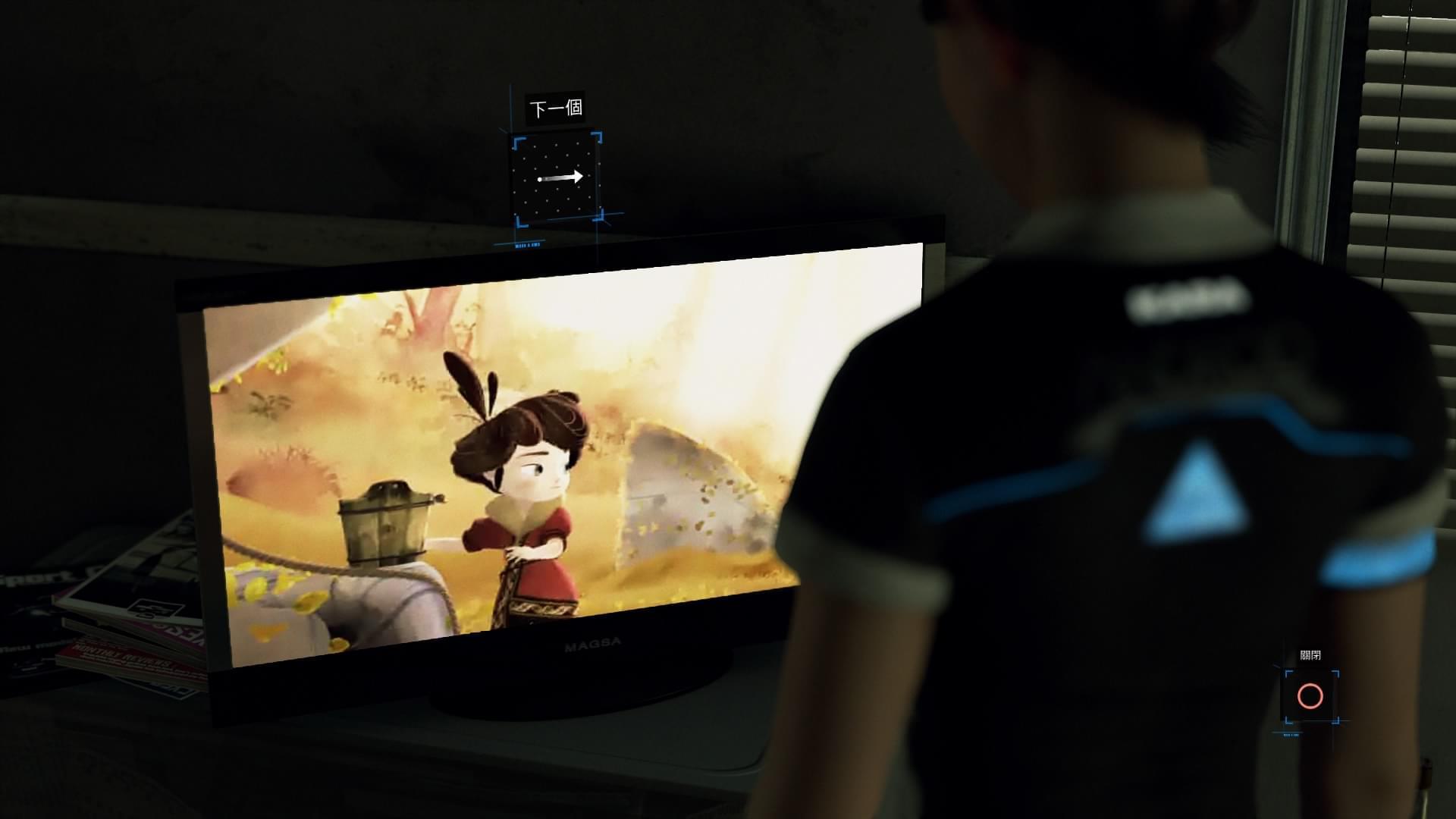 最初的關卡是康納來與暴走的仿生人談判,在讓仿生人放走人質後的幾秒內,暴走的仿生人就在彈藥中報廢。場景上是從電梯到市內再到室外這樣一個過程,值得一提一些比如說新的“偵查”界面,新的解密系統,體驗良好。