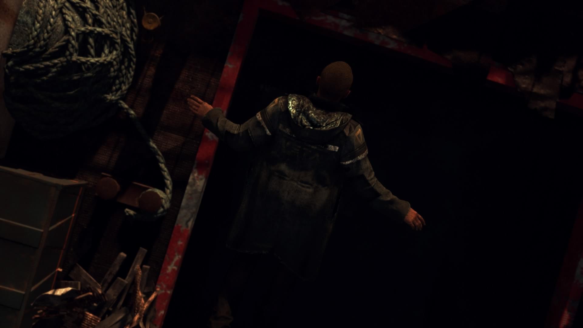 然後最關鍵的,這個交互不足以滿足讓玩家達成想要的操作,比如一開始我記得有次康納被刀刺穿在桌子上,我嘗試了很多次才發現必須將鏡頭移動到很靠右才能觸發拔起的刀,才能站起來,但是那個時候時間已經不夠。康納死亡。
