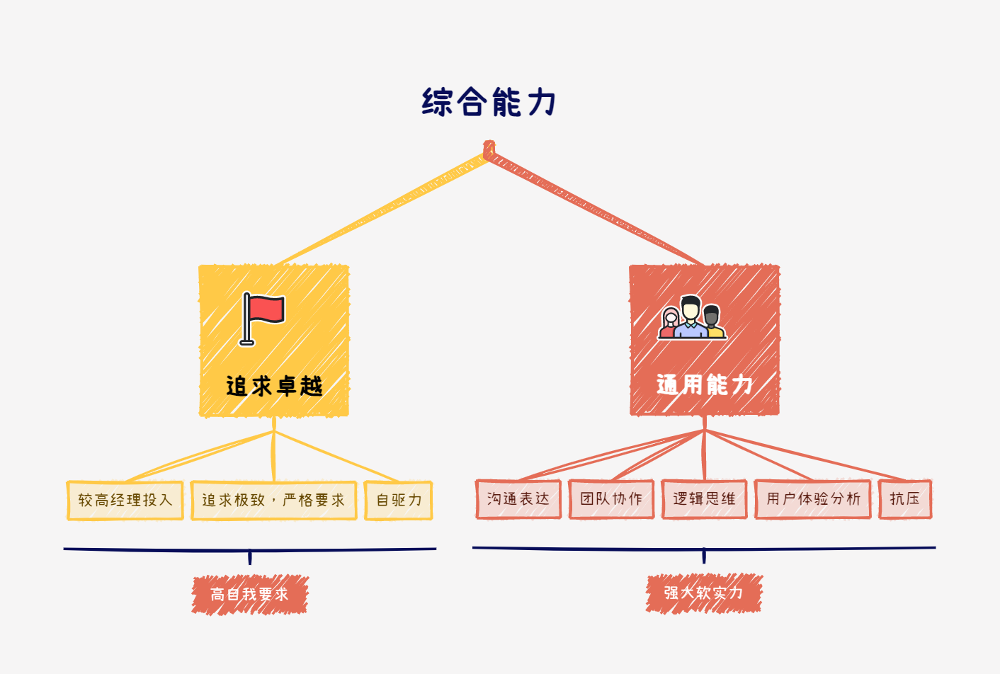 - 通用能力:沟通、团队合作、逻辑、用户分析……