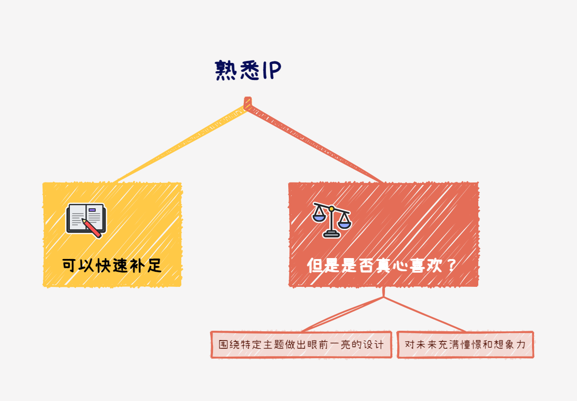 扪心自问,是否可以围绕这个IP做出一些令人眼前一亮的设计?或者对这个IP的未来是否充满憧憬和想象力?
