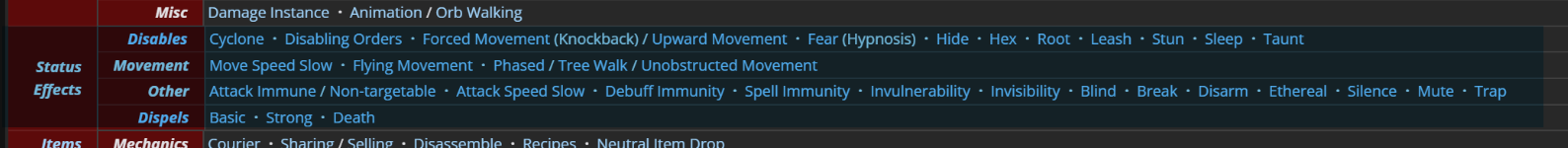 本文一开始试图整理的25种状态效果出自Dota2 Wiki的机制页面,一开始准备逐条进行介绍,但是又感觉很枯燥,缺乏一个指导性的思路(事实上本文的编写在本节卡了很久)。