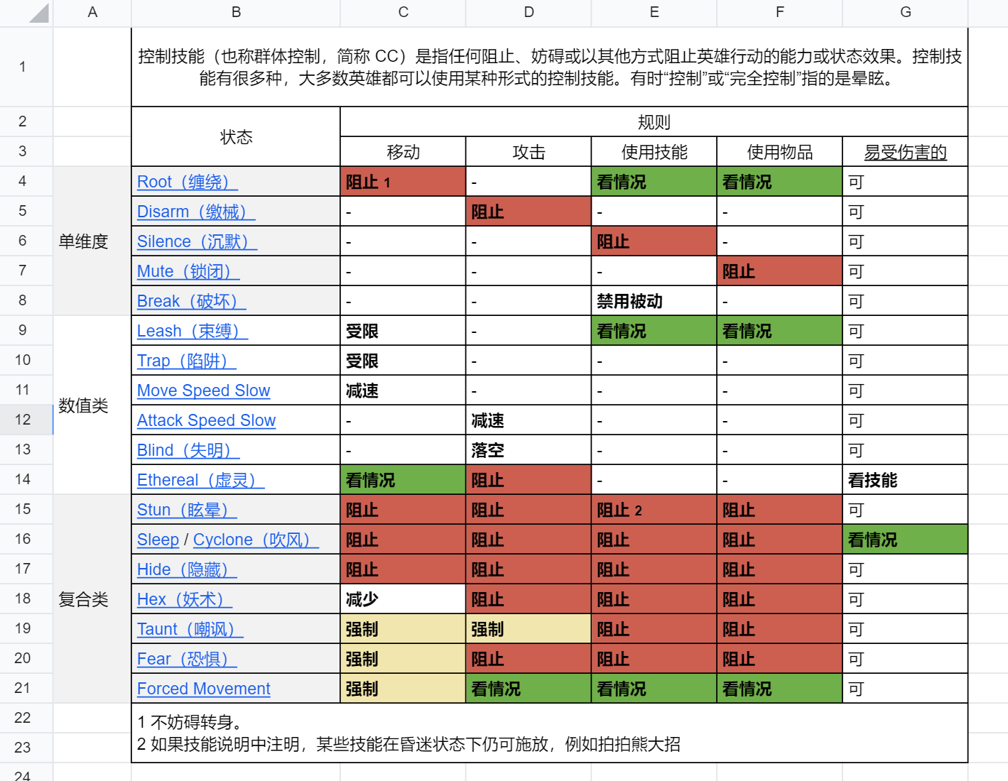 Dota2 Wiki中有个单独的页面介绍了不同控制状态的区别,这里简单翻译整理如下。