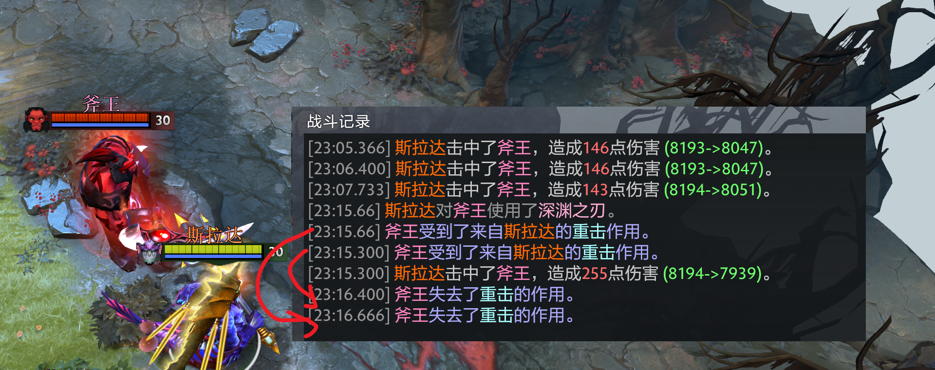 一个有意思的点是,被动仍然是生效的——留意斧王自动释放的被动反击螺旋。