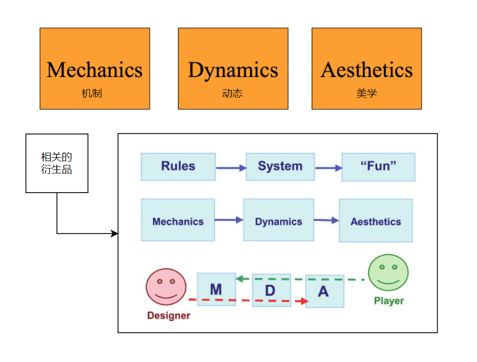 MDA框架是游戏设计中常用的理论框架,它将游戏划分为不同层次的多个概念,以此来让设计师更好地理解玩家的游玩过程,最终设计出更好的游戏。